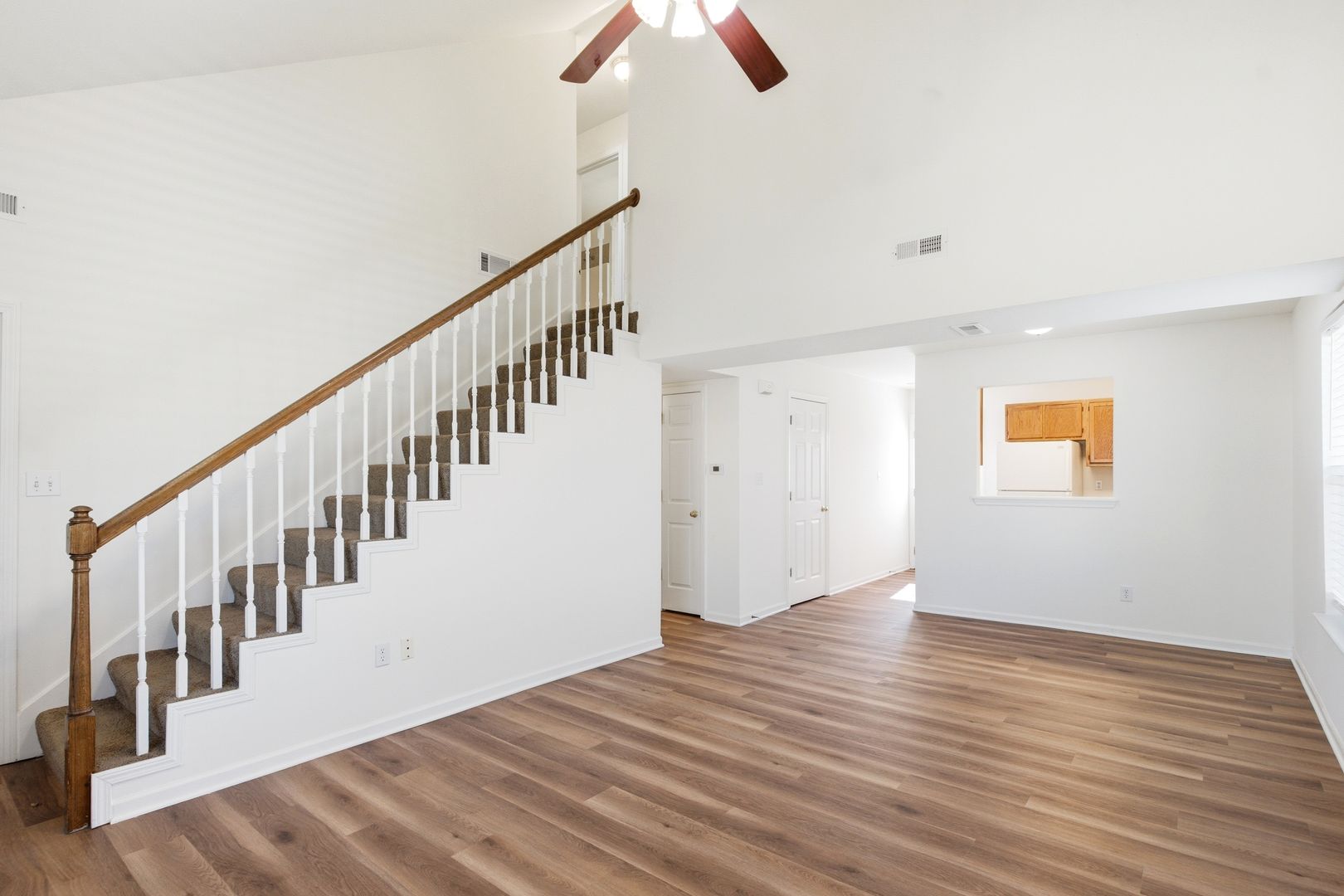 This is a lovely three bedroom, two bathroom town-home. Highlights of the property include a vaulted ceiling in the living room, plenty of closet space, ceiling fans in all three bedrooms, and furnished washer and dryer! There's also a 3/4 fenced backyard.