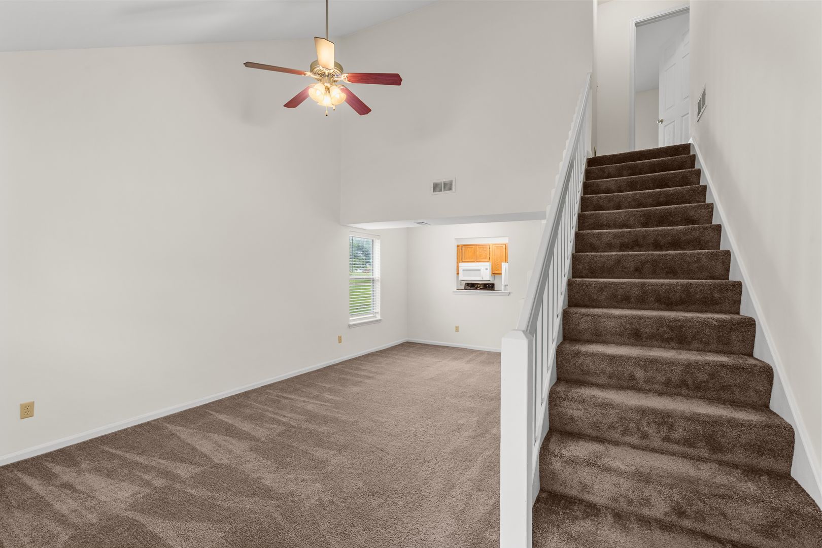 Lease this three bedroom, two bathroom town-home in the Southfield neighborhood. The layout is perfect with a bedroom and bathroom on the mail level and two bedrooms and a bathroom upstairs. There's plenty of closet space, ceiling fans in all bedrooms as well as the living room, a vaulted ceiling in the living room, and an attached one-car garage.