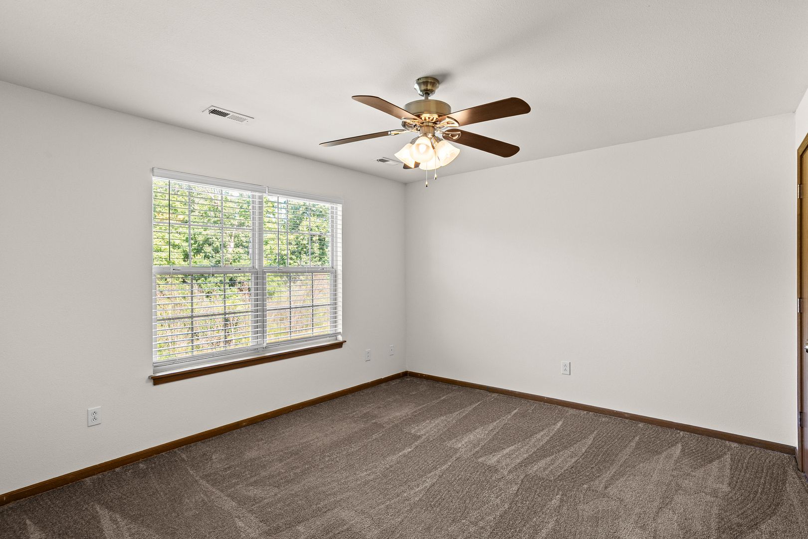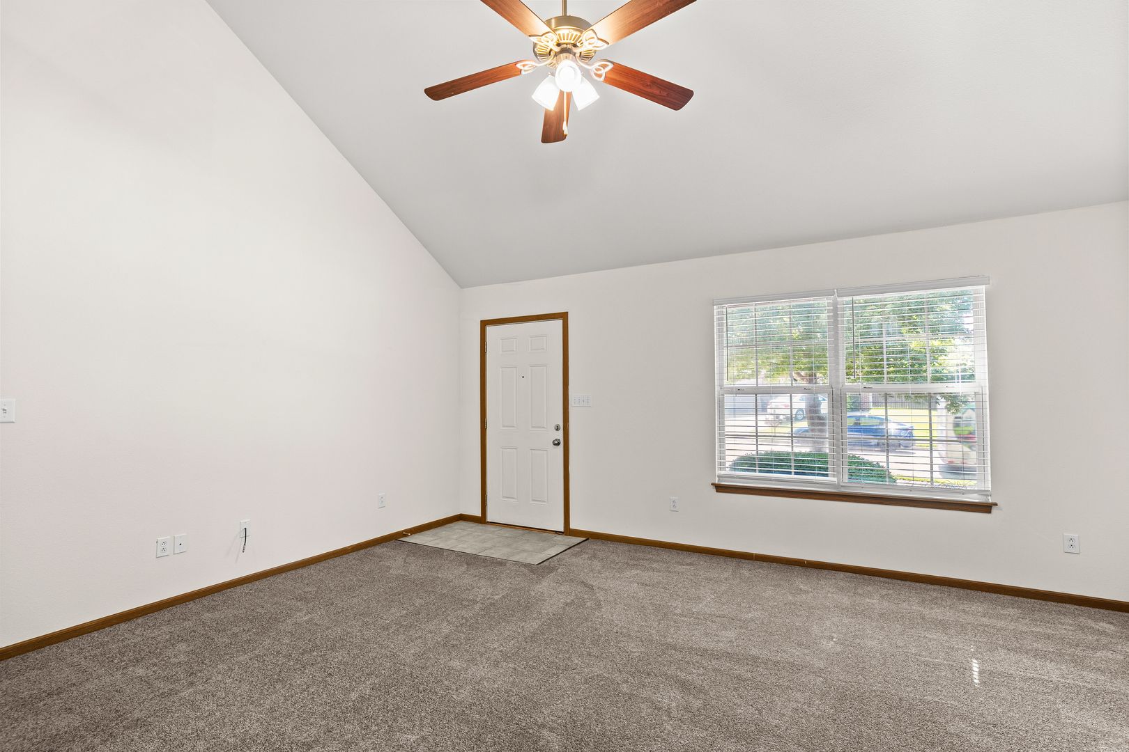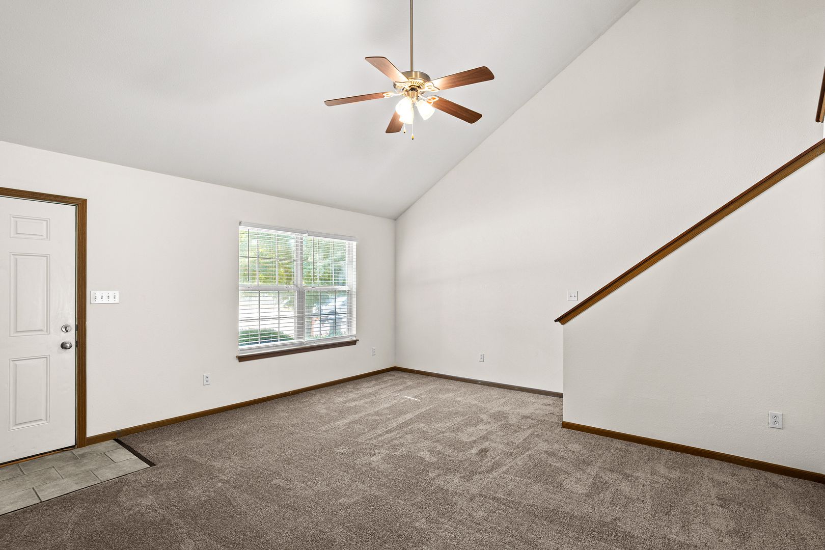 You'll love the layout of this three bedroom, three bathroom town-home. A grand staircase and vaulted ceiling grace the living room and there's a main level bedroom and bathroom. Each bedroom upstairs has its own private suite, washer and dryer are furnished, plus there's an attached single-car garage.